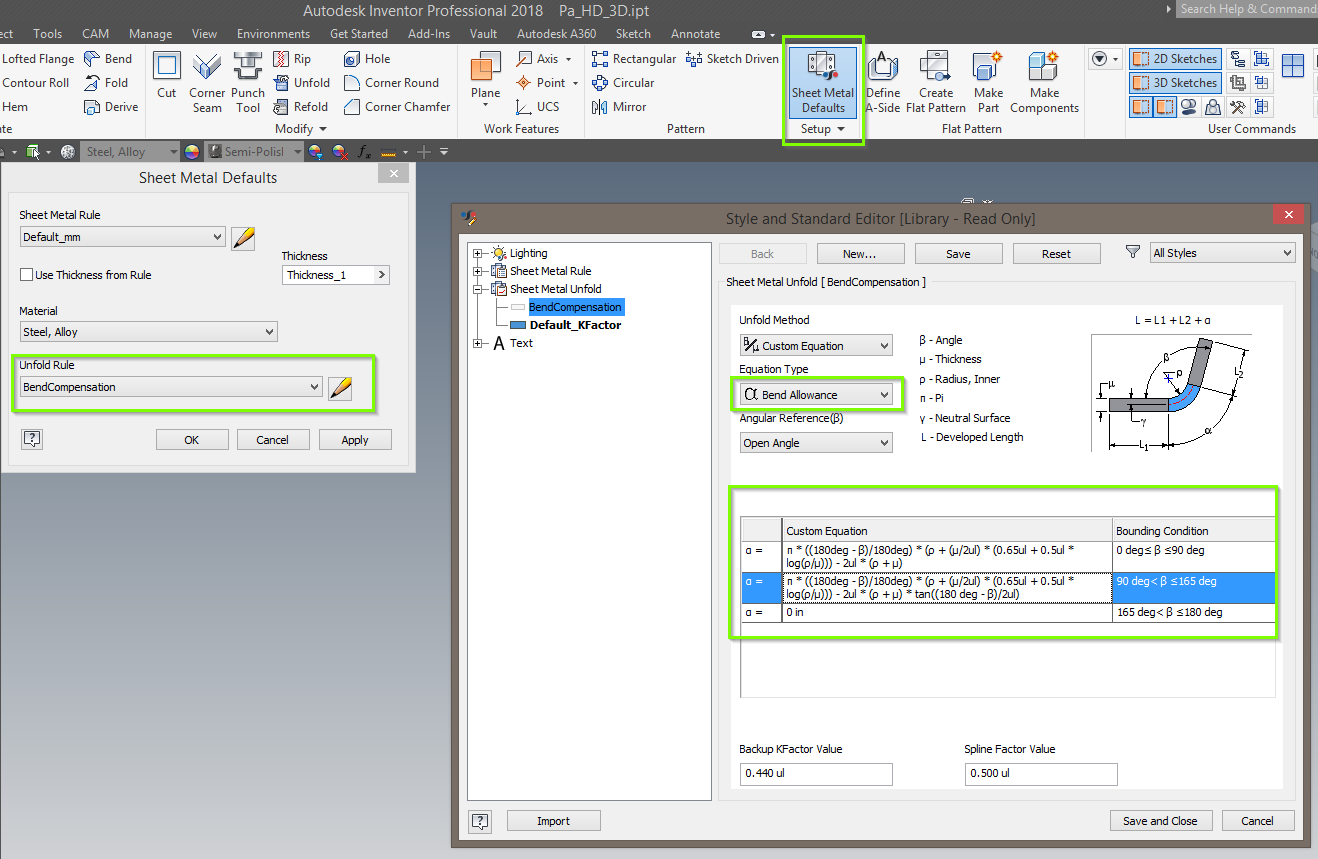 You can override the default sheet metal style settings using the unfold options and the bend or corner tabs on the feature creation dialog box.